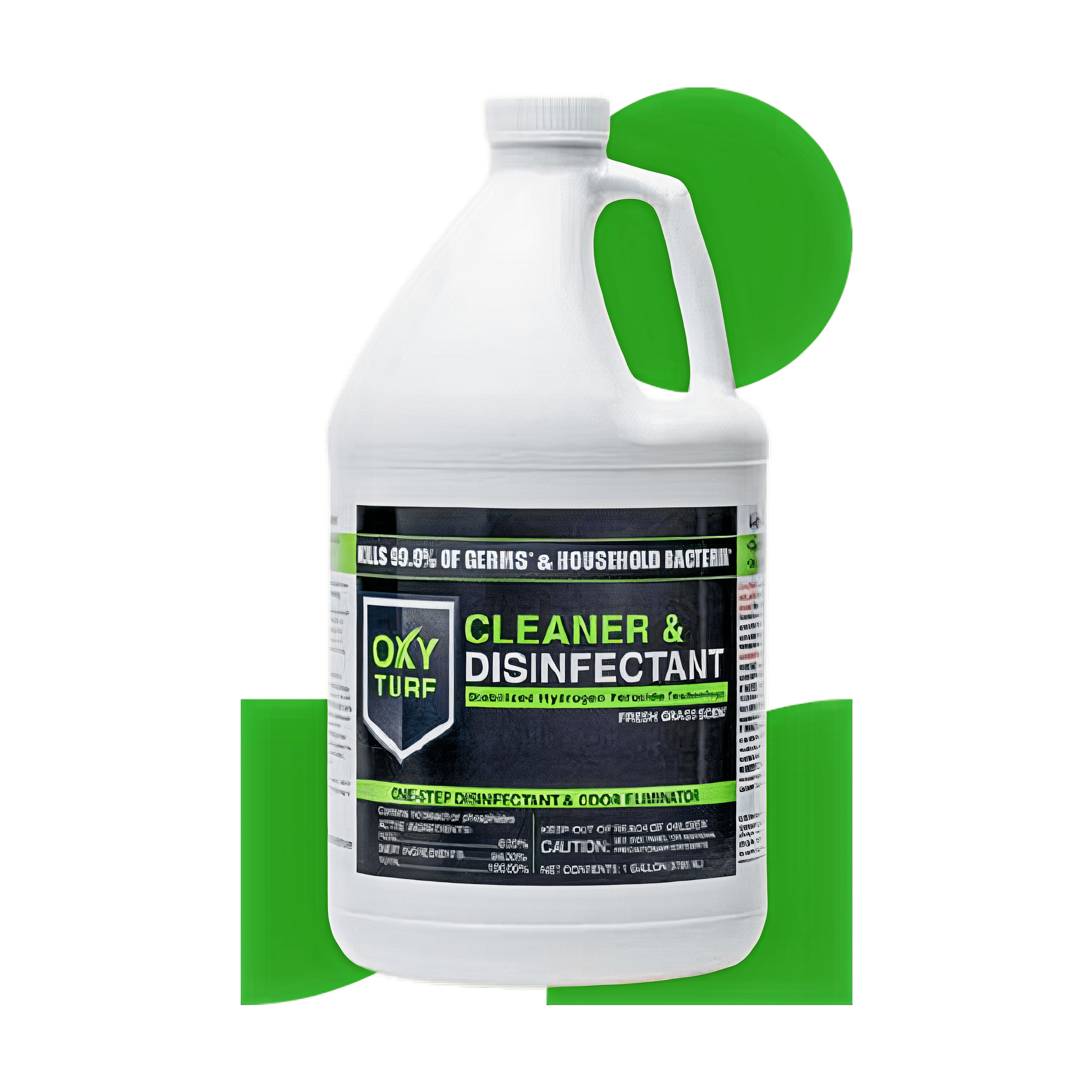 Oxyturf is formulated to disinfect 99.9% of microbes, viruses & bacteria. As a cleaner, Oxyturf removes togh stains, filth & cuts through tough grime or grease, without scrubbing.